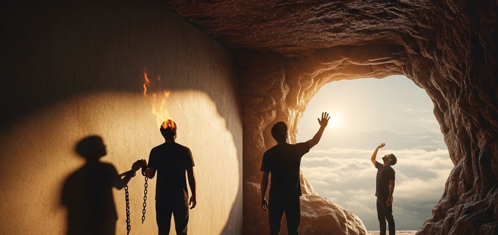 A teoria só ganha vida quando aplicada à experiência humana. Veja como a jornada da caverna para a luz transforma destinos: